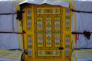 The traditional decoration within a yurt is primarily pattern based.These patterns are generally not according to taste, but are derived from sacred ornaments with certain symbolism. Symbols representing strength are among the most common. Repeating geometric patterns are also widely used. The most widespread geometric pattern is the continuous hammer or walking pattern (alkhan khee). Commonly used as a border decoration it represents unending strength and constant movement;