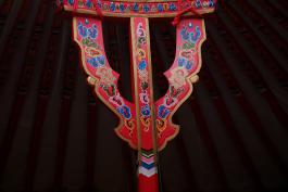 Detail of a Yurt TOOHO, the centre piece is holding the whole wooden structure together without nails or screws.